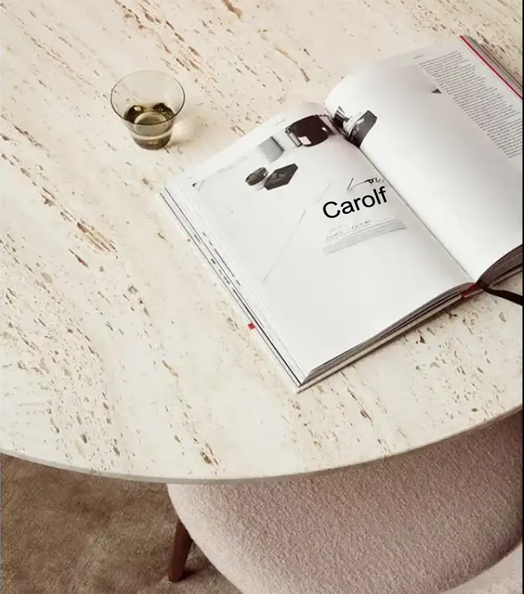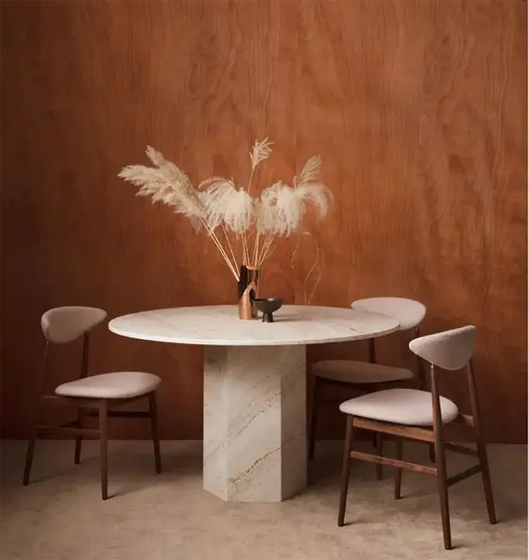 Round Travertine Dining Table Handmade Italian White Marble Design Beige Stone Table